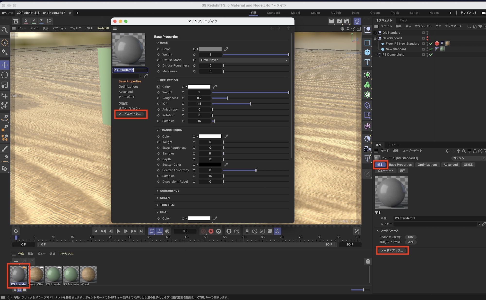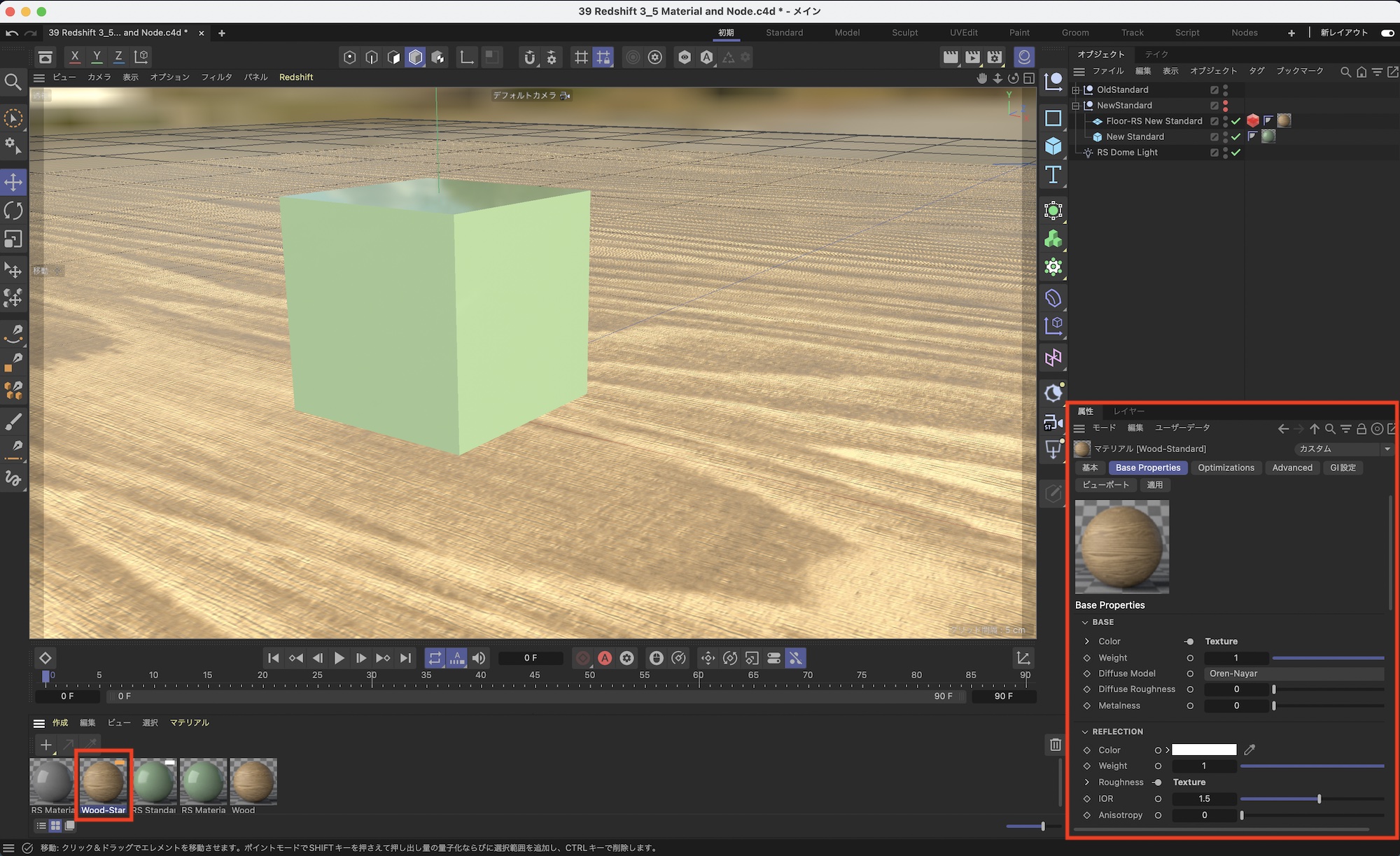 Redshift 3.5ではこれまでの標準マテリアルである「Redshift Material」に加えて、新しい標準マテリアルとして「Redshift Standard Material」が追加されました。