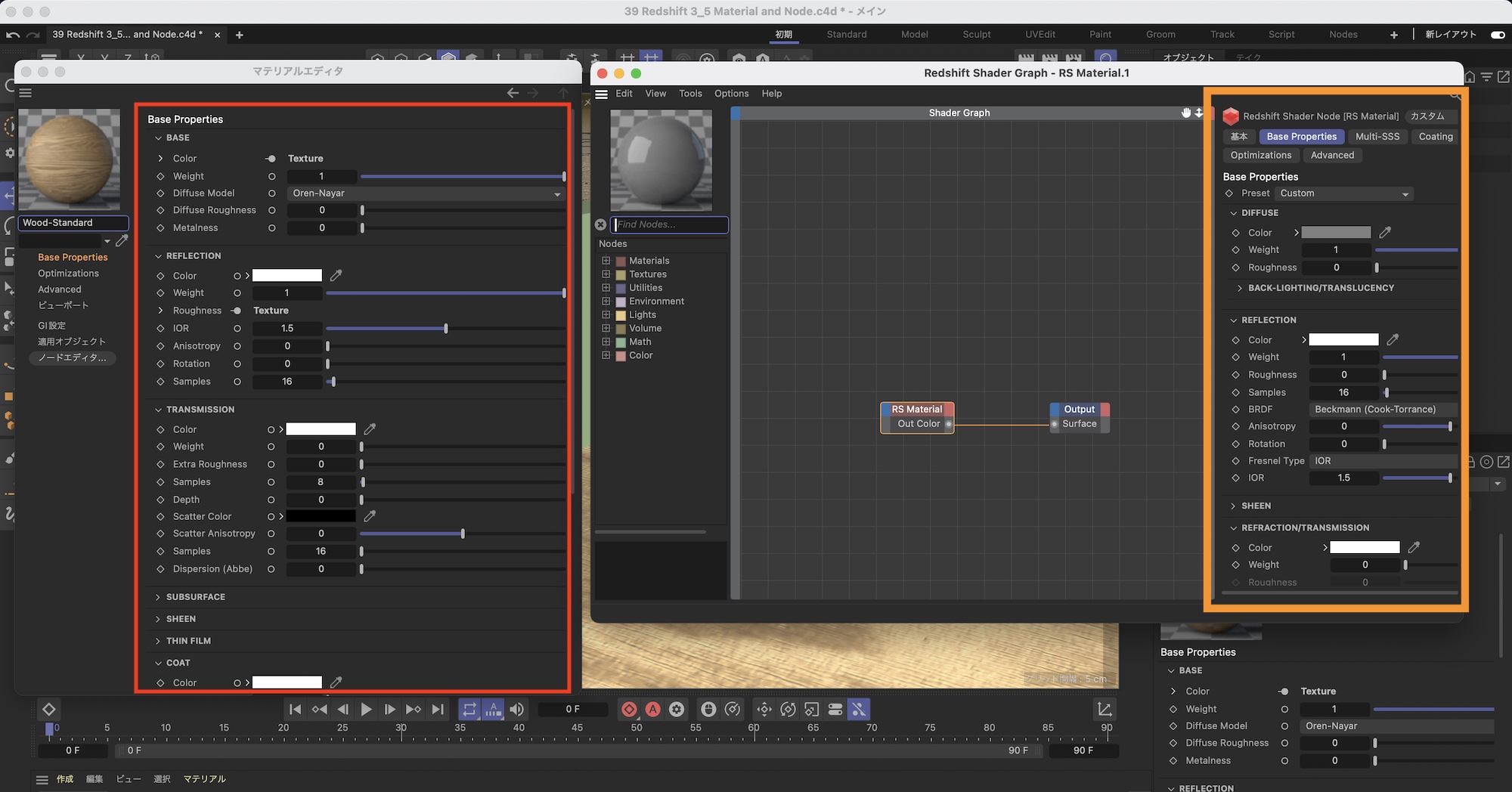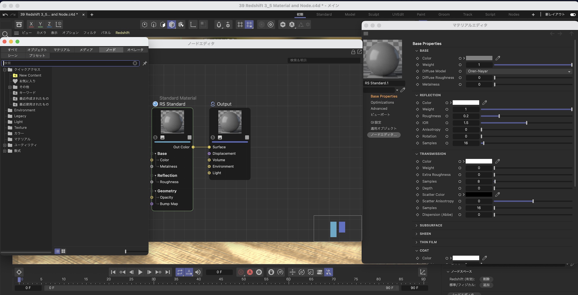Redshift 3.5で導入されたマテリアルエディタとノードグラフは以前のバージョンのものと比べて、インターフェイスが新しく見えますが、マテリアルエディタとノードグラフはCinema 4Dにもともとあった物なので、Cinema 4Dの標準マテリアルを使ったことがあればある程度問題なく使えると思います。