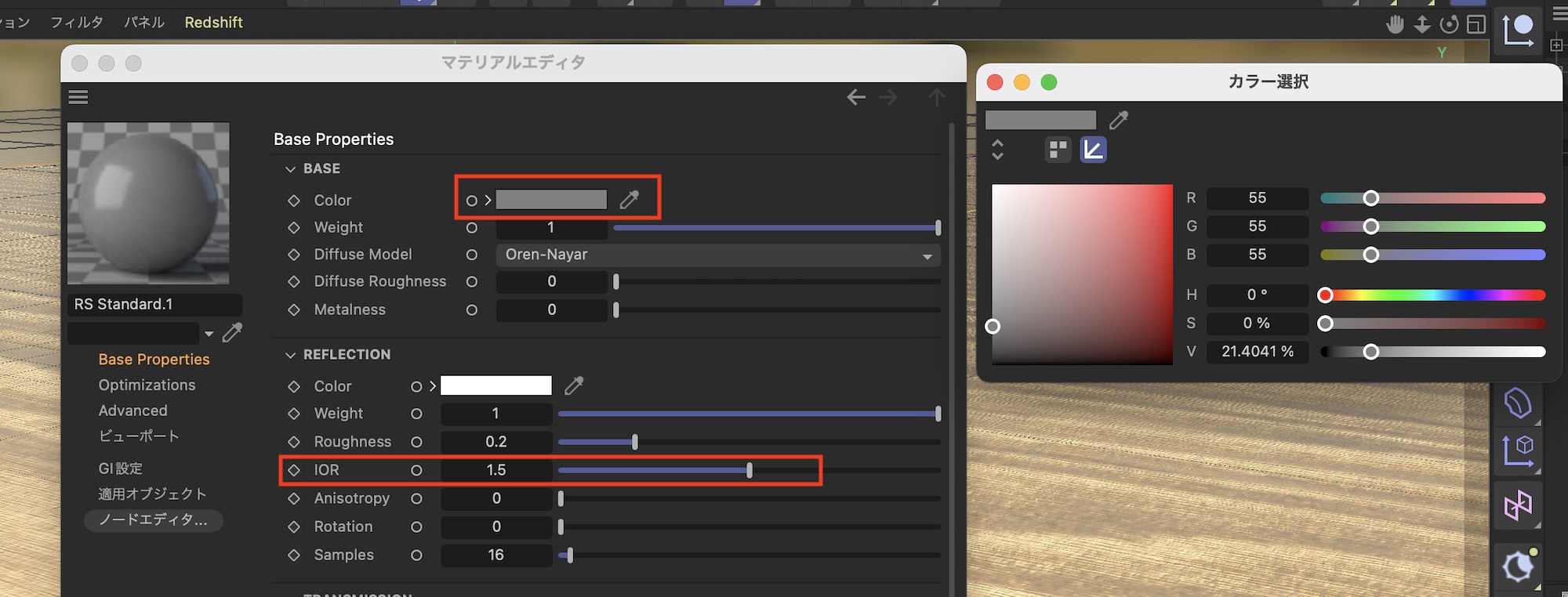Redshift MaterialとStandard Material