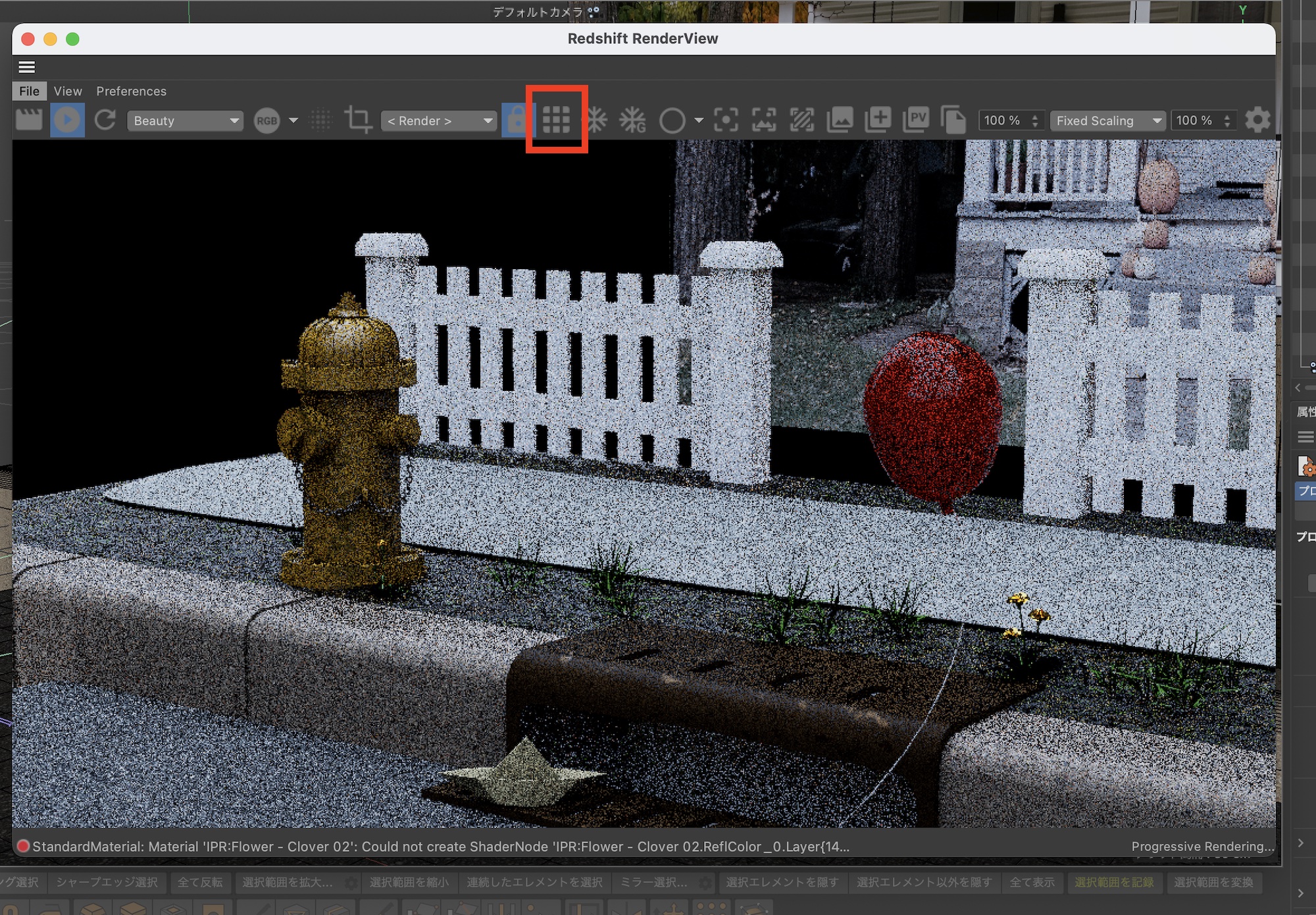 その横にある再生アイコンは「Start/Stop IPR」はProgressiveレンダリングをリアルタイムで行います。