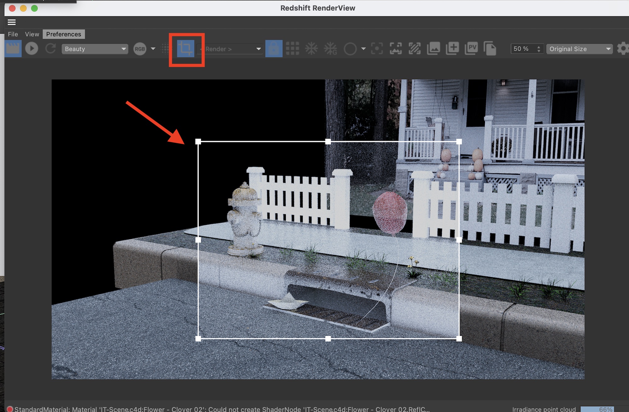 上部ツールバーのクロップアイコンまたは「Shiftキー+ドラッグ」でレンダリングしたい範囲を指定することが出来ます。範囲を解除したい場合は上部のクロップアイコンをクリックしましょう。