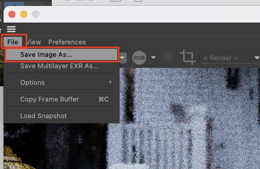 レンダリングされたシーンを画像として保存する場合は上部メニューの「File」、「Save Image As..」をクリックします。