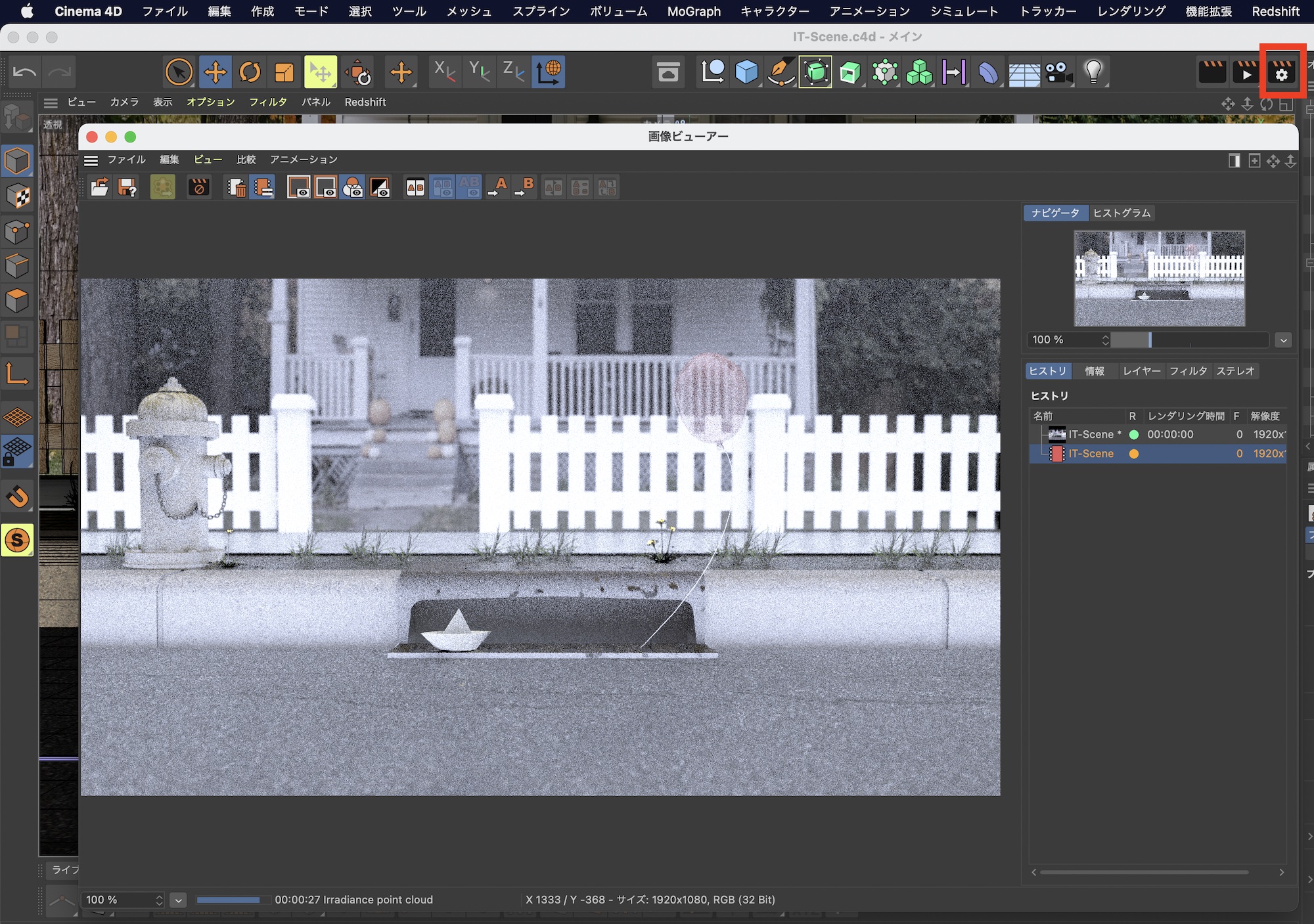 [Redshift] シーンをリアルタイムで確認したり、レンダリングでプロジェクトを書き出してみよう